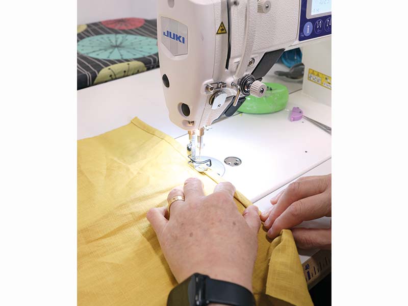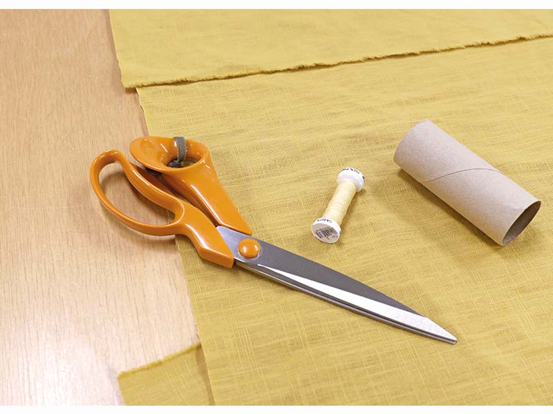 Klipp linnetyget i kvadrater. Vi rekommenderar måttet 40 × 40 cm, alternativt något mindre för att servetten enkelt ska kunna tryckas ner i toarullen. Fålla sedan alla fyra sidor för att skapa en snygg och hållbar servett.