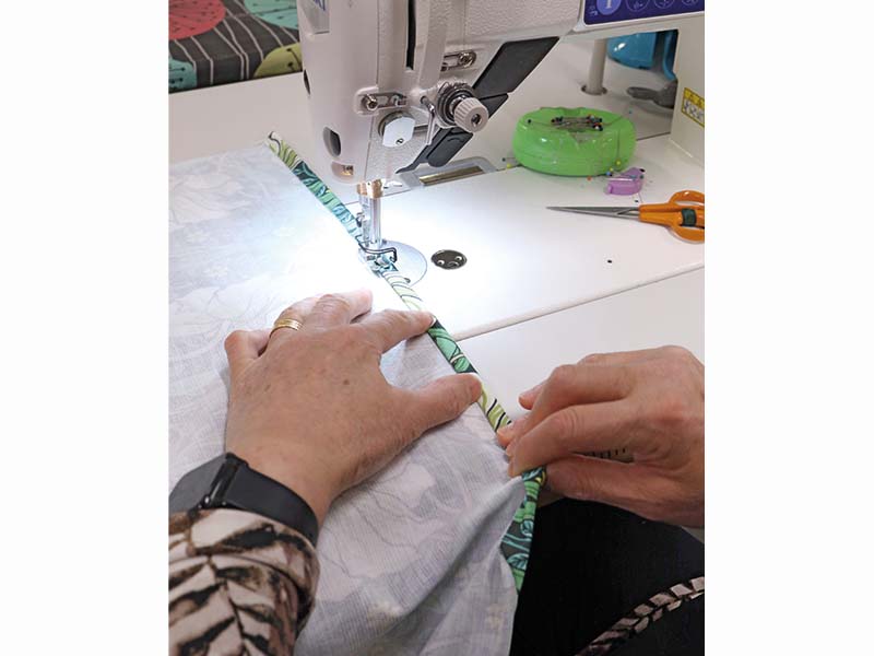 4. Vik tyget så kortsidorna vilar mot varandra och sy med raksöm ca 20cm upp längs med väskans båda sidor.
